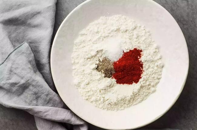 - Mix the mixture: crispy frying flour, salt, black pepper, chili powder.