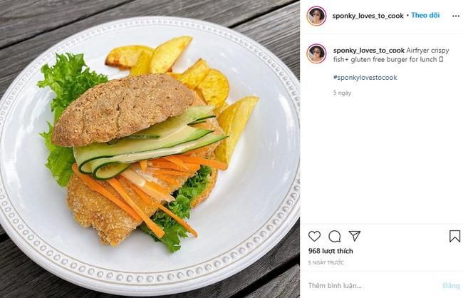 Recently, Tăng Thanh Hà shared a picture of a burger with crispy fried fish made using an air fryer. It turns out that the glamorous Tăng Thanh Hà is also a genuine fan of this super convenient appliance.
