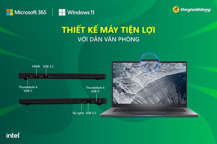 This generation of office and study laptops is also equipped with various modern, common interfaces, such as: 2 Thunderbolt 4 USB-C ports, 2 USB 3.2 ports, HDMI, and a 3.5mm headphone jack, supporting easy data transfer to various peripheral devices without cumbersome conversions.