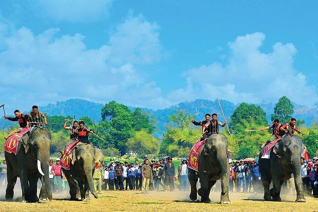 This is one of the most captivating and attractive Tay Nguyen festivals in Ban Don with numerous outstanding entertainment activities. Some notable performances include ceremonies for the health of elephants, riverbank ceremonies, buffalo fighting festivals (or buffalo feasts), elephant racing, elephant soccer, elephants swimming across the Serepok River, ceremonies for the new rice crop celebration, cultural and culinary competitions of various ethnic groups, and rice pounding competitions. Particularly, the elephant racing festival and buffalo fighting festival are highly favored by domestic and international tourists for their vibrant and lively competitive atmosphere.