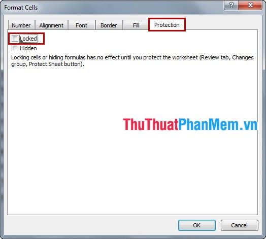 In the Format Cells dialog, select the Protection tab and uncheck Locked, then press OK.