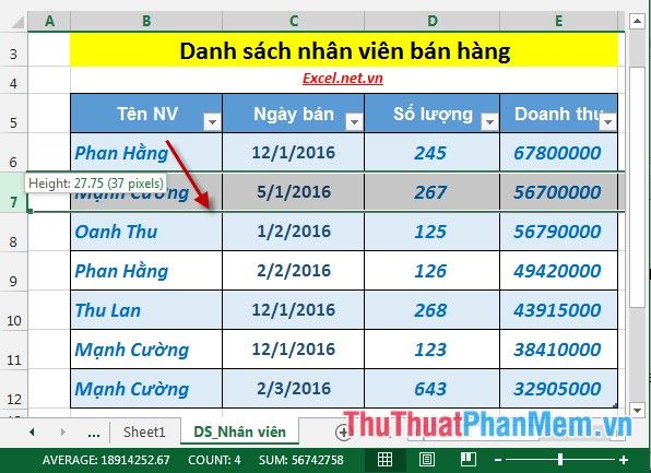 - Similarly, to adjust the width of a row, click on the horizontal part of the row, then drag the mouse to resize: