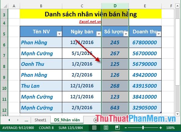 - Click and hold the left mouse button on the column header, then drag the mouse to resize: