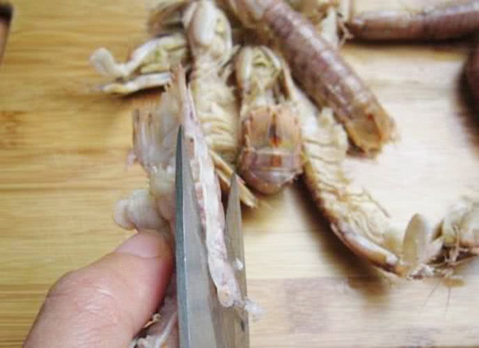 - Clean the mantis shrimp, drain excess water, and cut the shell along the back for better salt absorption and easier peeling when eating.