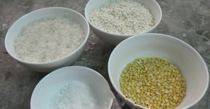 - Soak sticky rice, jasmine rice, and peeled mung beans separately in 3 bowls of water for about 30 minutes. After soaking, drain them in 3 separate baskets to remove excess water, then roast each type until fully cooked.