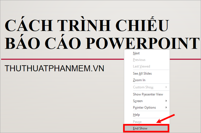 Concluding your presentation is a breeze – simply press Esc or right-click -> End Show.