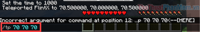 Note: Careless teleportation may lead you to a location already occupied by blocks. In such cases, your character will get stuck and continuously receive damage. To avoid this, append the word true to the end of the command line.