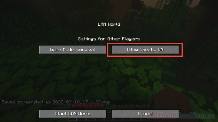 - If you've previously created a world and want to enable cheats while playing, press ESC to open the menu >> select Open to LAN >> Allow Cheats: On >> Start LAN World.