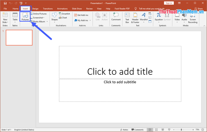 Step 1: Open the PowerPoint file where you want to add text to an image and select Insert -> Pictures to choose the image you want to insert into the file.