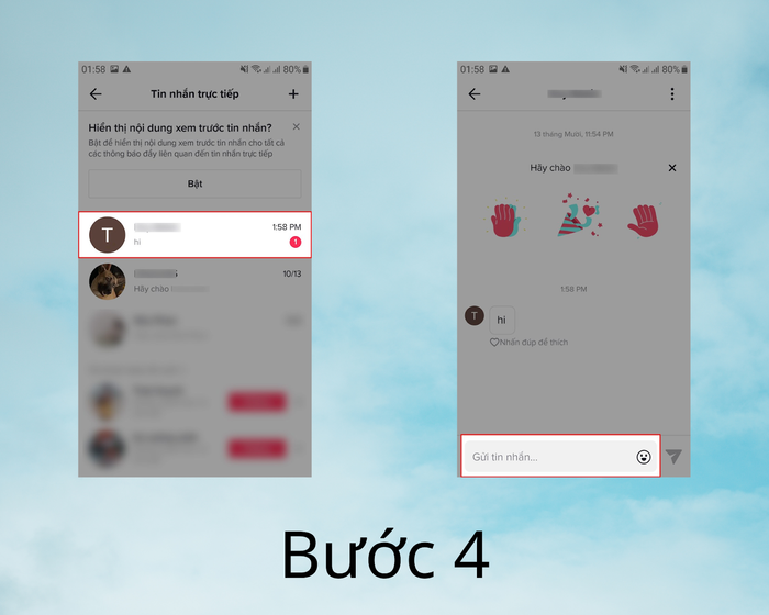 Enter your message and send it (Source: Mytour)Note: Make sure TikTok notifications are enabled to receive alerts for new messages.