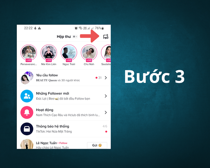 Select the Inbox icon at the bottom right of the screen (Source: Mytour)- Step 3: Choose the arrow icon at the top right corner.