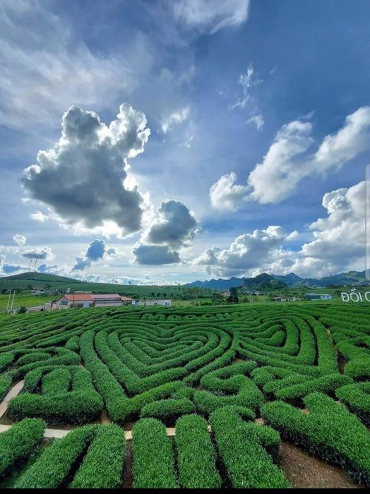 One of the must-visit places when traveling to Moc Chau is the tea hills, with rows of tea plants so neat and green that it feels like stepping into a mysterious maze in Europe. A highlight of Moc Chau tourism is undoubtedly the heart-shaped tea hill.