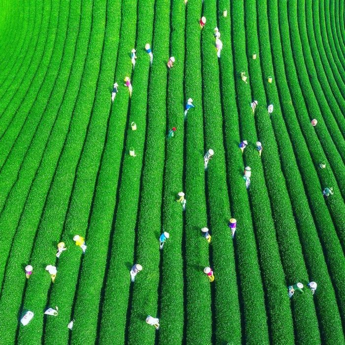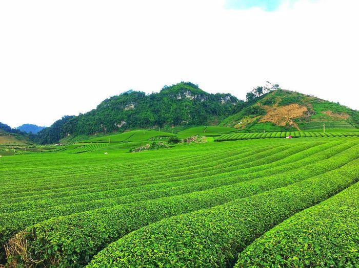 Discover the beauty of Moc Chau's tea hills through the diligent hands of hardworking individuals. The scenery of lush, green tea plantations is stunningly beautiful.