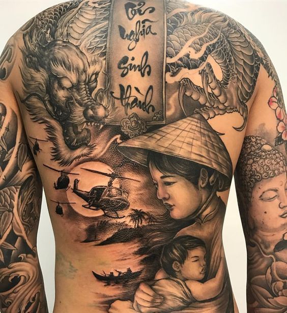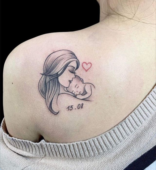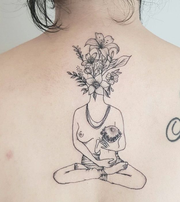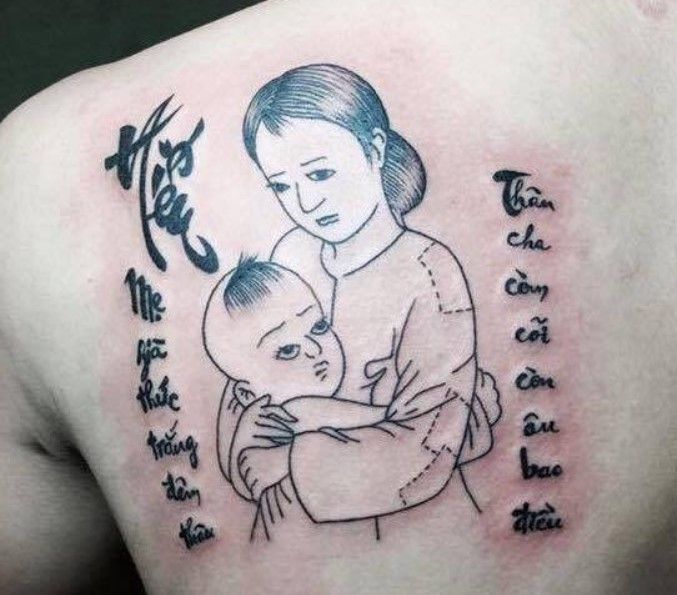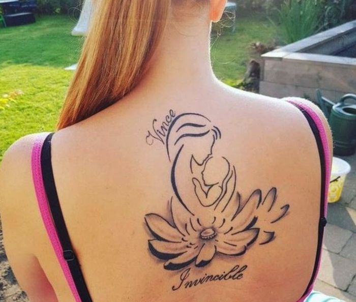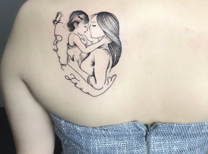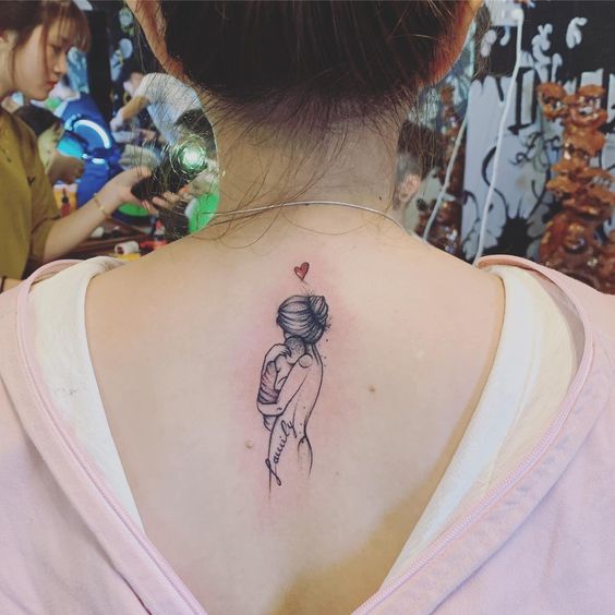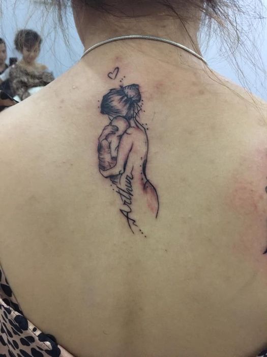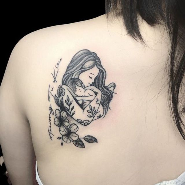 In this article, we have compiled the most beautiful back tattoos of mothers carrying their children. Have a great day!