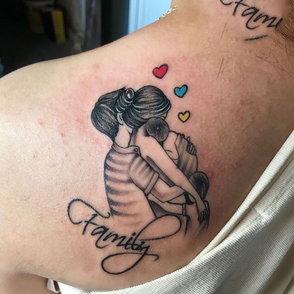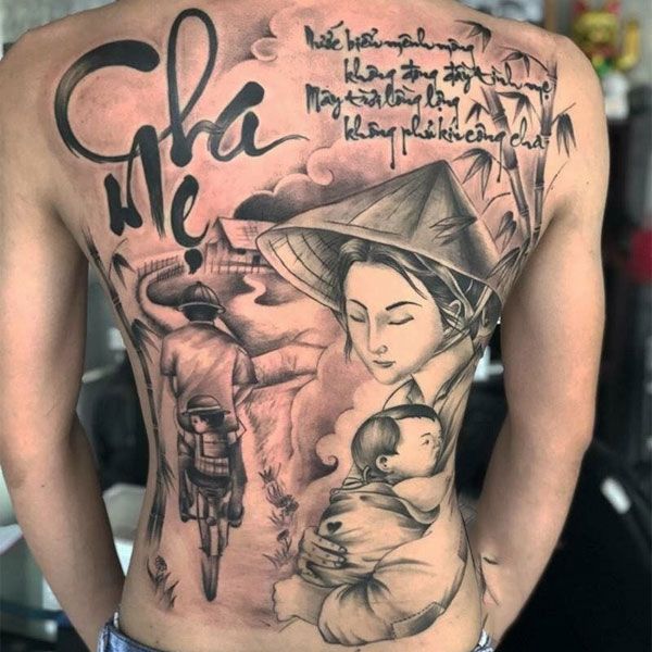 Back Tattoos of Mothers Carrying Their Children