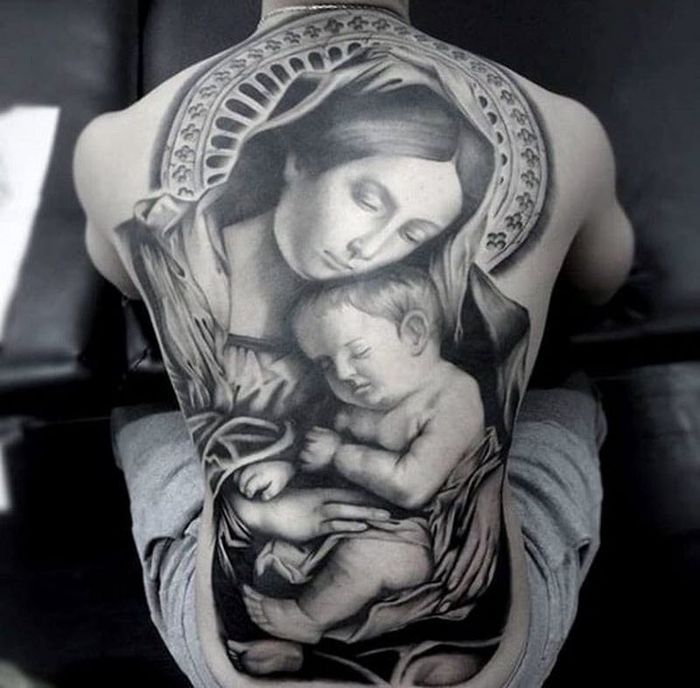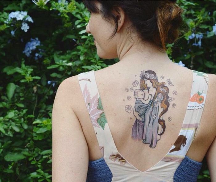 Exquisitely Beautiful Back Tattoos of Mothers Carrying Their Children