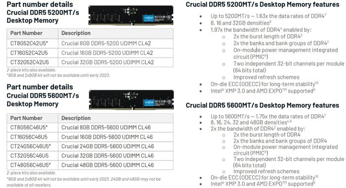 Recently, Crucial has become the first manufacturer to introduce DDR5 DIMM products with capacities of up to 24GB and 48GB for both desktops and laptops. These DIMM memory modules adhere to JEDEC standards, allowing PCs to have more RAM while maintaining the same number of DIMMs.