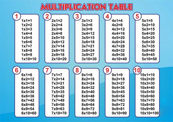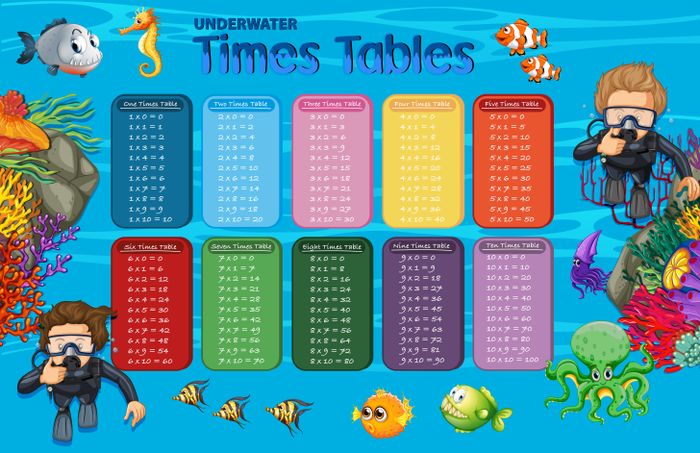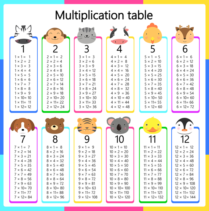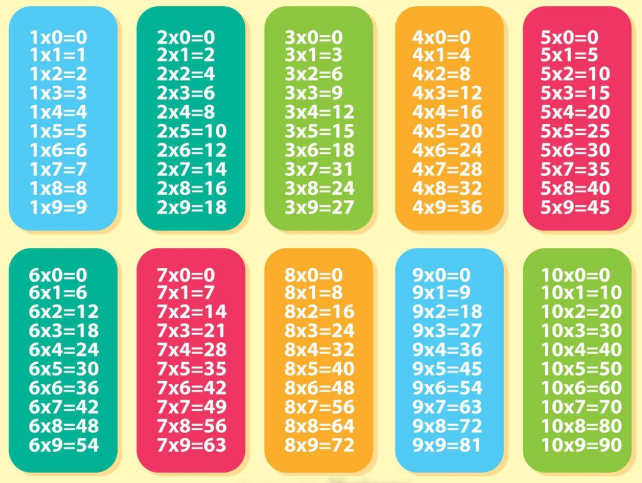 Below are standard multiplication and division tables along with some beautiful designs for kids. Let's explore together!