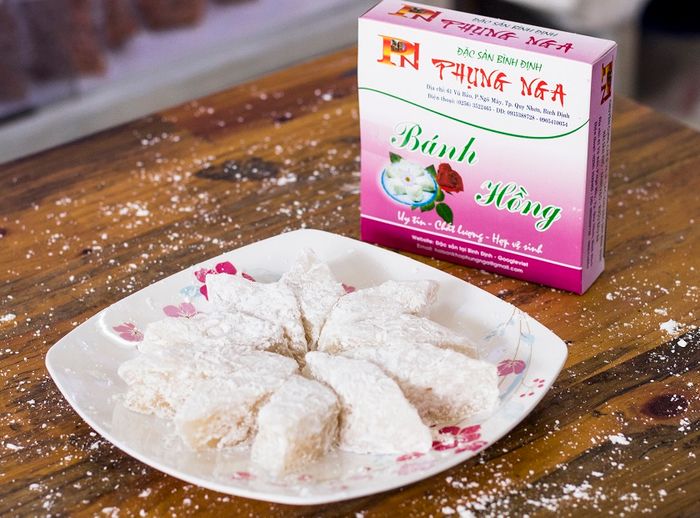Address to buy delicious Hong Tam Quan Cakes in Binh Dinh: 03D Tang Bat Ho, Quy Nhon City. Prices range from 100,000 VND to 150,000 VND depending on whether you buy a lot or a little.