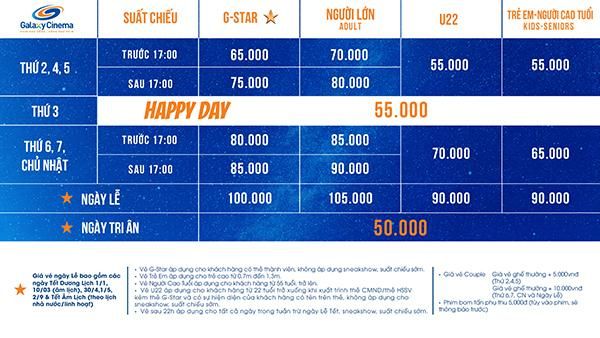 A significant advantage of Galaxy MIPEC Long Biên is its high-quality services at affordable ticket prices compared to the market. Ticket prices are categorized based on audience, time, and additional amenities. Notably, regular 2D screenings range from 50,000 VND to 90,000 VND. What's more attractive is that all 3D screenings are priced at a flat rate of 95,000 VND for G-Star members and 100,000 VND for other customers.