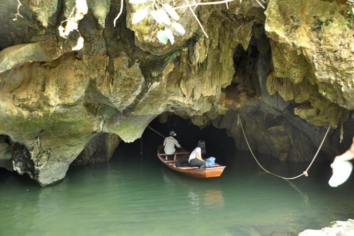 Kẽm Trống is a nationally recognized scenic spot since 1962, located 80km south of the capital Hanoi along National Highway 1A, between the provinces of Hà Nam and Ninh Bình. Kẽm Trống can be simply understood as the place where the Đáy River flows between two mountain ranges. To the left are the Turtle Mountain and Cổ Động Mountain, belonging to Hà Nam Province, and to the right are Bài Thơ Mountain and the Bạt Gia Mountain range in Ninh Bình Province. Besides mountains and rivers, visitors here can also marvel at numerous enchanting caves with various stalactite formations extending throughout the caves. Kẽm Trống is also a place immortalized in poetry by the poet Hồ Xuân Hương, known by the locals through a few verses until today: