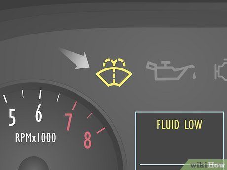 Solving the Problem: Replenish windshield washer fluid by refilling the reservoir in the engine bay with fluid matching the symbol on the cap. If the light persists, clean out the reservoir with distilled water to remove debris, then refill with washer fluid.