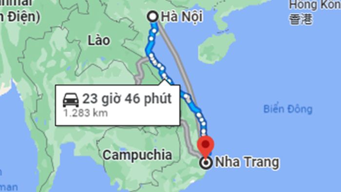 The road distance from Hanoi to Nha Trang is approximately 1,283km