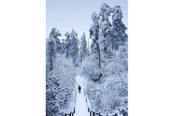With an elevation exceeding 3,000 meters, Nga Mi - one of China's most renowned peaks - resembles a winter fairyland adorned with a blanket of pure white snow.