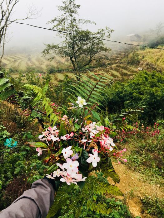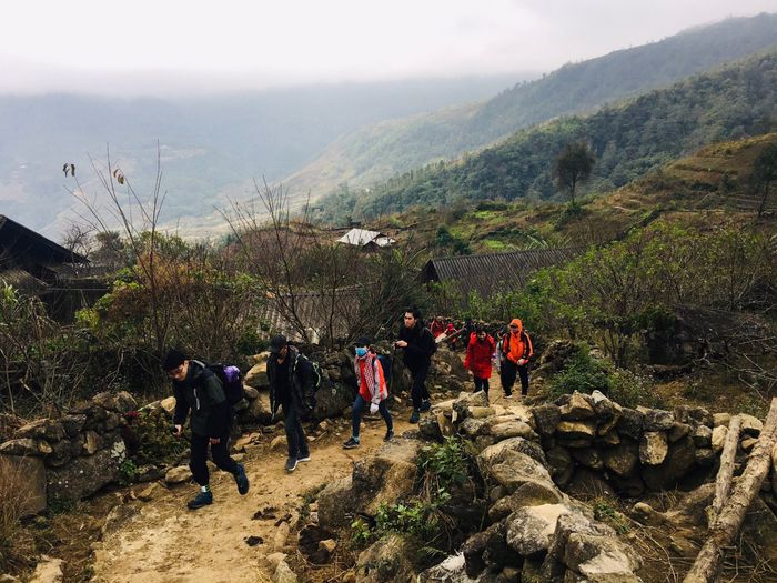 Departing from Hanoi on Friday night, around 5 a.m. the following day, we arrived in Sapa. Here, we stored our clean clothes and unnecessary items so that after descending from the mountain and soaking in medicinal leaf baths, we could stroll around the town unburdened. At 7 a.m., we traveled an additional 60km by car and 8km by motorbike to the trekking point in Nhiu Co San village, officially commencing our exciting journey.