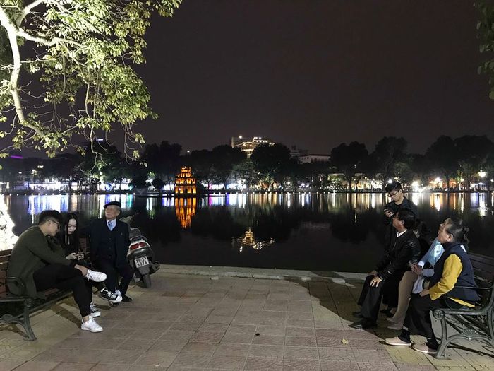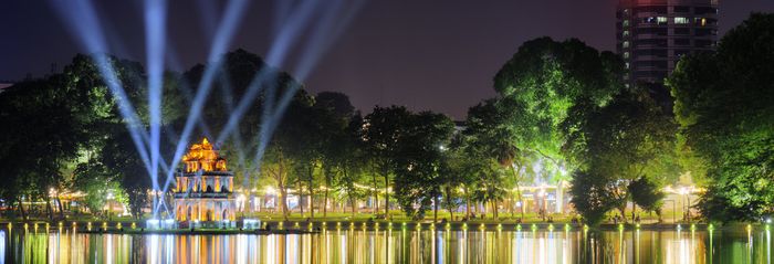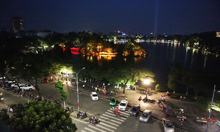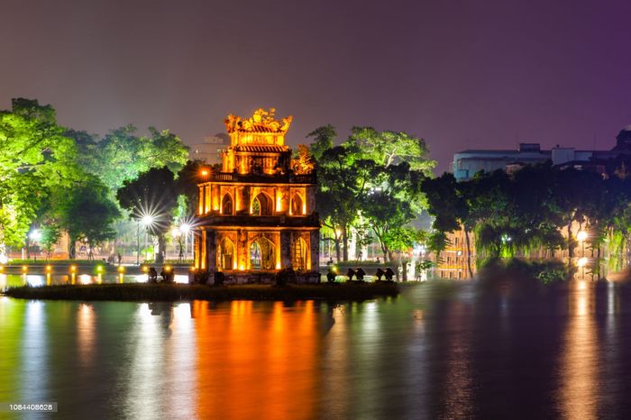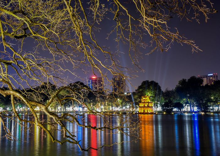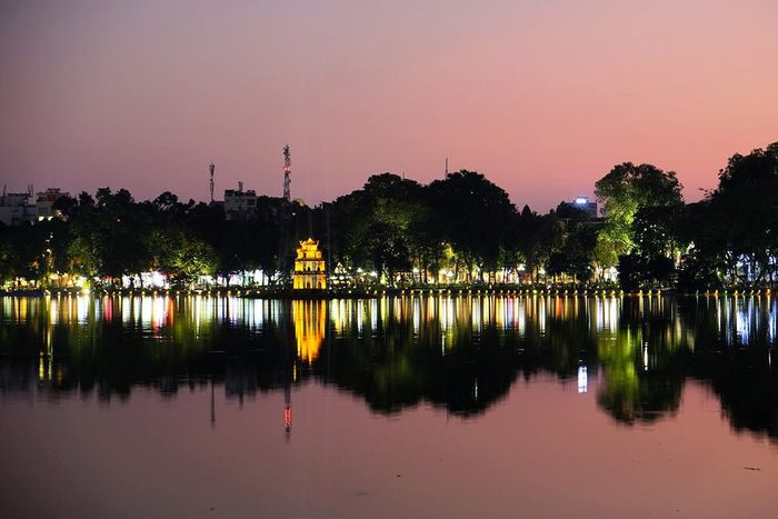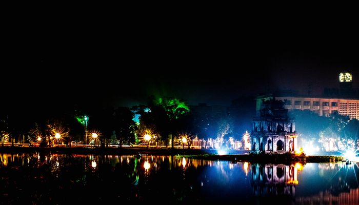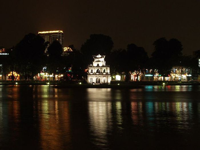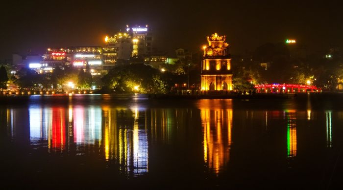 Scenic Views of Hoan Kiem Lake at Night