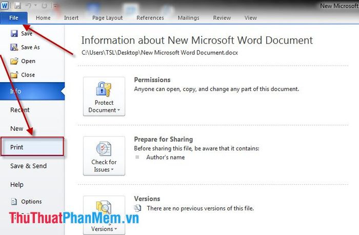 Example: In Word, click on File, then Print.
