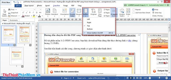 By default, the program always leaves a reasonable space for binding, and the position of the binding may vary depending on the print template. To accurately determine the binding position, you can select Page Layout -> Gutters -> Show Gutters On/Off.