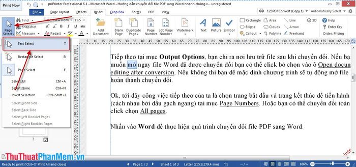 If you notice any errors or inaccuracies in the content while viewing, you can directly edit them on priPrinter without opening the original file. Click on Insert, choose Page Select, then click on Select Text, and click on the text segment needing correction.