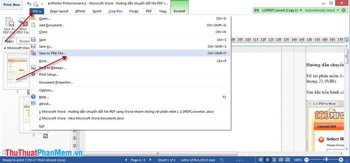 As soon as you click Print in Word and successfully export the file, priPrinter will automatically start and display the content of the file to be printed.
