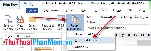 After setting the password, select Protect Document and then click on Restricted Access.