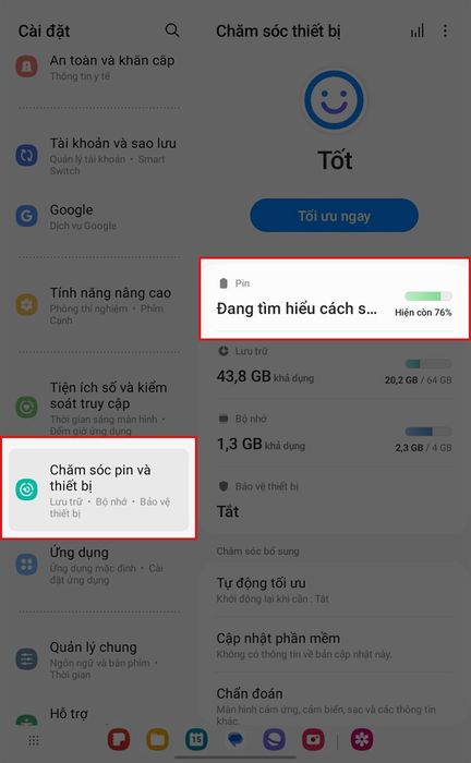 Step 1: Begin by accessing Settings directly on your device and navigate to Battery & Device Care section. Here, you'll find various options regarding battery, memory, storage,... simply tap on Battery to proceed.