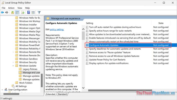 Local Group Policy allows you to configure everything on Windows 10, 11, including completely turning off updates. To disable updates on Windows 10, 11 comprehensively, follow these steps: