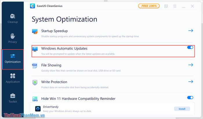 Step 2: Open EaseUS Clean, go to the Optimization tab, and disable the Windows Automatic Updates option.