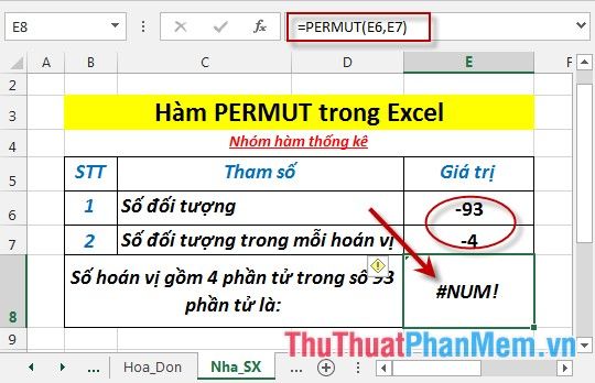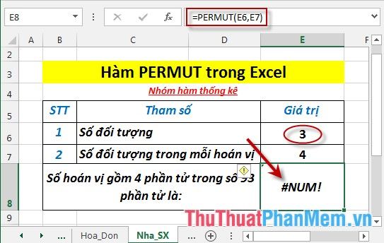 - If number (number of objects)< number_chosen (number of objects in each permutation) -> the function returns an error value #NUM!