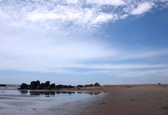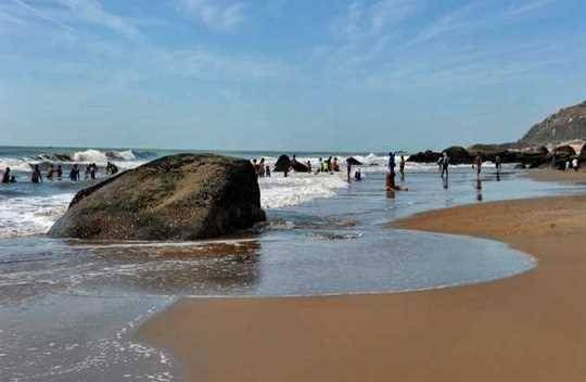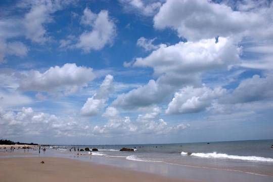 Leaving Vũng Tàu city via provincial road 44, approximately 16 km, takes you to Phước Hải Seas. The expansive space of Phước Hải Seas unfolds beneath the cool green canopy, and the sound of the breeze evokes a feeling of tranquility by the sea. The crystal-clear seawater gently laps against the thin sand, while small crabs crawl peacefully, unfazed by the playful waves… You can leisurely frolic on a broad beach with a gentle slope, featuring picturesque rock formations on the water's surface, catching the foamy white waves.