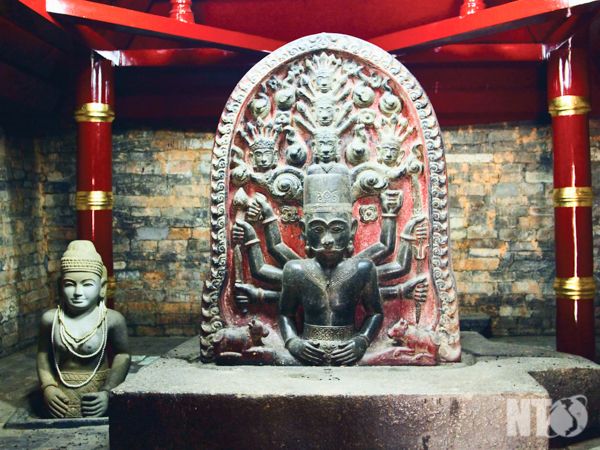 In addition to the king's statue, there's also a smaller statue believed to represent Queen Po Bia Sancan, an Êđê woman, standing approximately 0.75m tall. The interior of the tower, narrow and elongated in an east-west direction, reveals a small hallway in the front courtyard, with a wooden ceiling.