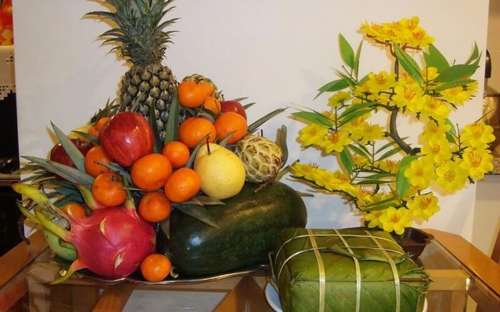 The fruit tray of people in the Northern region is arranged according to the theory of five elements (Metal, Wood, Water, Fire, Earth), and it must include bananas and pomelos. Additionally, depending on the preferences of each household, homeowners can choose corresponding fruits to ensure harmonious colors. For example: