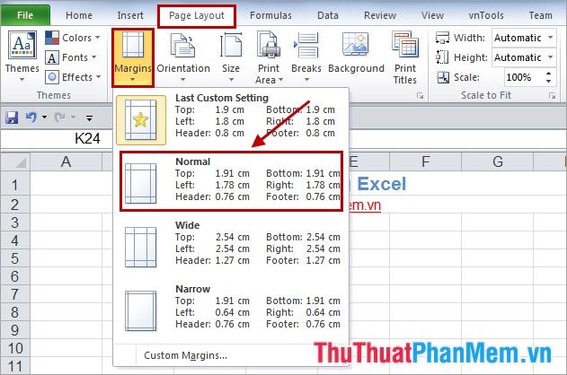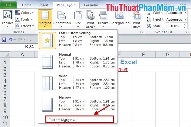 2. You can customize margins as you wish by selecting: Page Layout -> Margins -> Custom Margins.