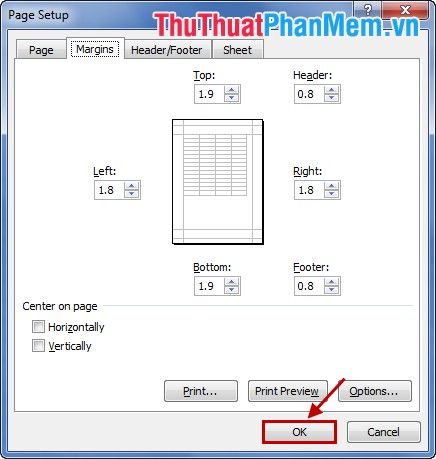 The dialogue box will appear, adjust the margins and then press OK.