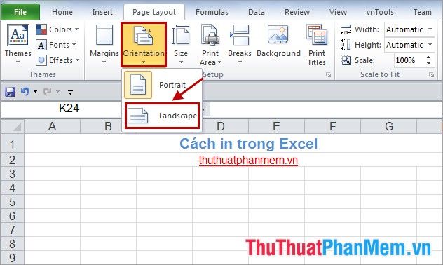 Select the Page Layout tab -> Orientation -> choose page orientation.