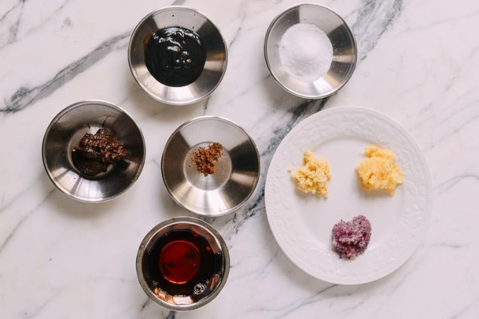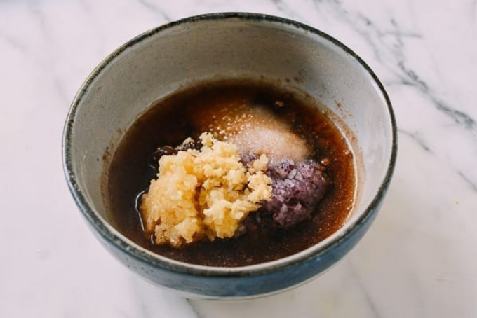 - 60ml soy sauce, 3 tablespoons Hoisin sauce, 4 cloves minced garlic, 1 tablespoon minced shallots, 2 tablespoons minced fresh ginger, 1½ tablespoons salt, 3 tablespoons Shaoxing wine, 1 teaspoon Chinese five-spice powder.