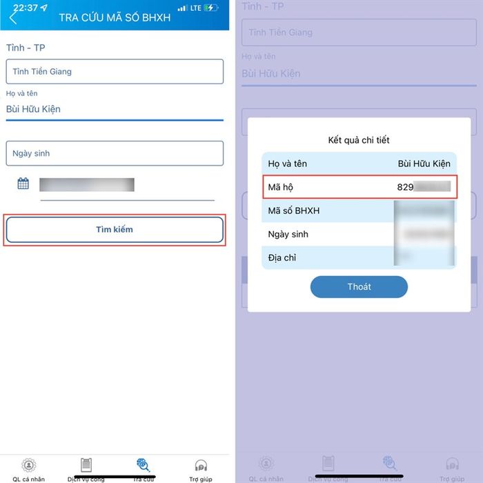 Step 2: Enter the province/city where you registered for BHXH, then enter your full name and date of birth. Next, select Search. The system will display the household registration number for you!