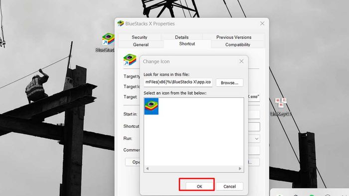 Step 3: You will see a new window appear. Here, you can select an alternative icon for your shortcut. After selecting the icon, click 'OK'. Then continue to click 'OK' in the properties window to complete the process.