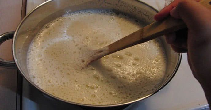 +If not, put soybeans + 1 liter of water into a blender and blend well. Use a strainer or cloth filter to discard the residue, leaving only the liquid to put into a pot and boil.