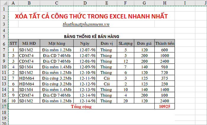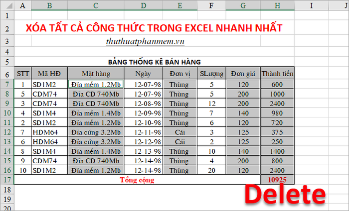 Above is the fastest way to delete all formulas in Excel, saving you maximum time compared to selecting each cell containing a formula individually. Hopefully, this article will be helpful to you. Wish you success!